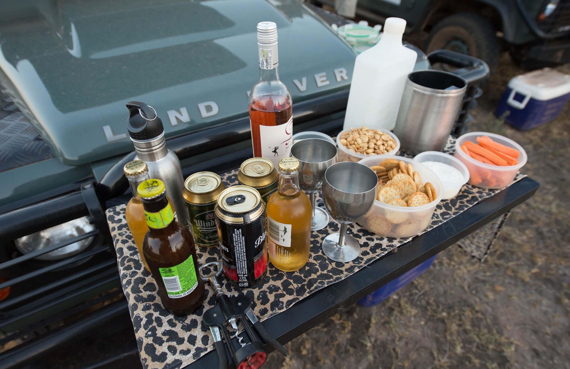 We provide simple, tasty meals, prepared in traditional bush style on the open fire. Included, too, are tea, coffee, fruit juice, rusks, fruit and snacks throughout the day and on your daily drives. Drinks are sold at a nominal mark-up and not at usual “hotel” prices. We have a good wine selection sourced from local South African vineyards. Guests help themselves to drinks and we use an honesty bar system.